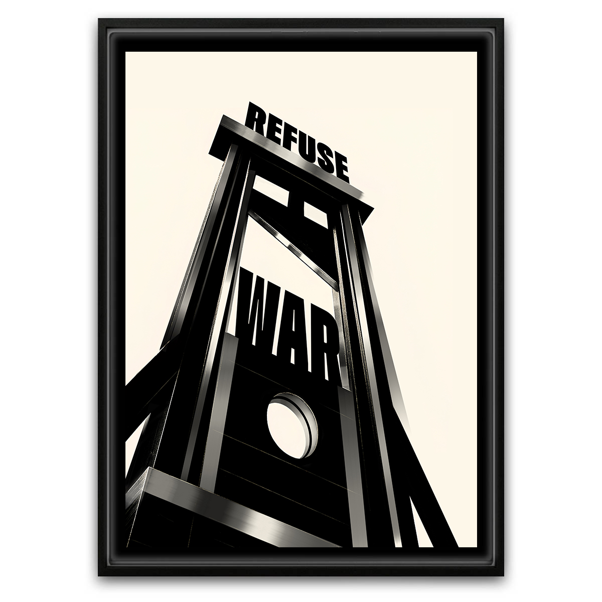 The unmistakable silhouette of a guillotine rises like a piece of civic architecture — austere, monumental, impossible to ignore. Once a symbol of revolutionary justice, it stands here as a reminder that wars rarely begin on battlefields.